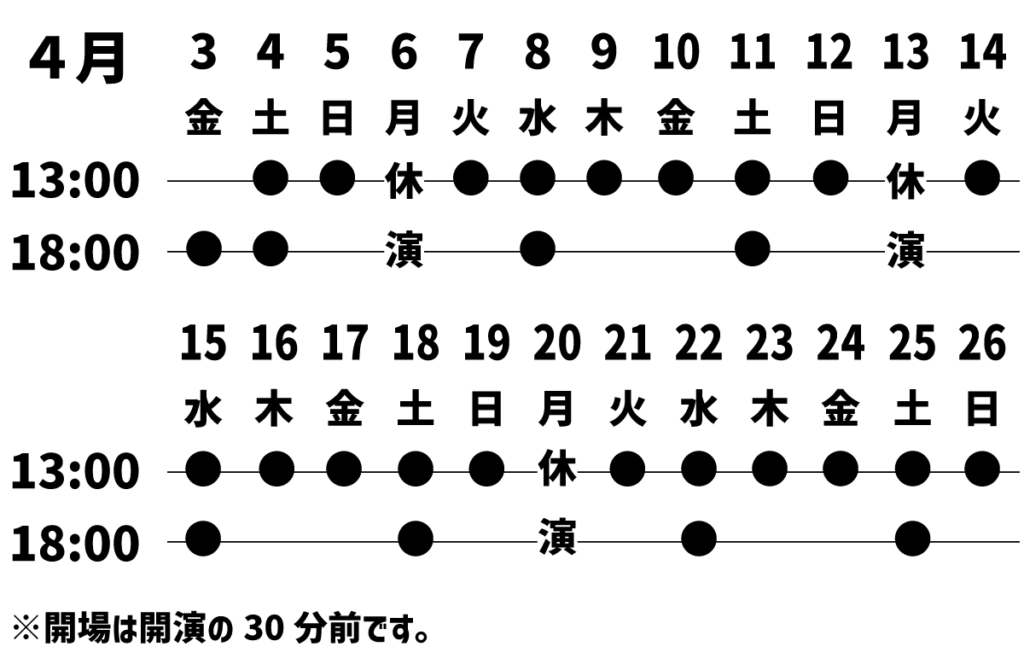 ※本公演は、変形舞台仕様になります。通常のシアターイーストの座席位置と異なります事を予めご了承ください。