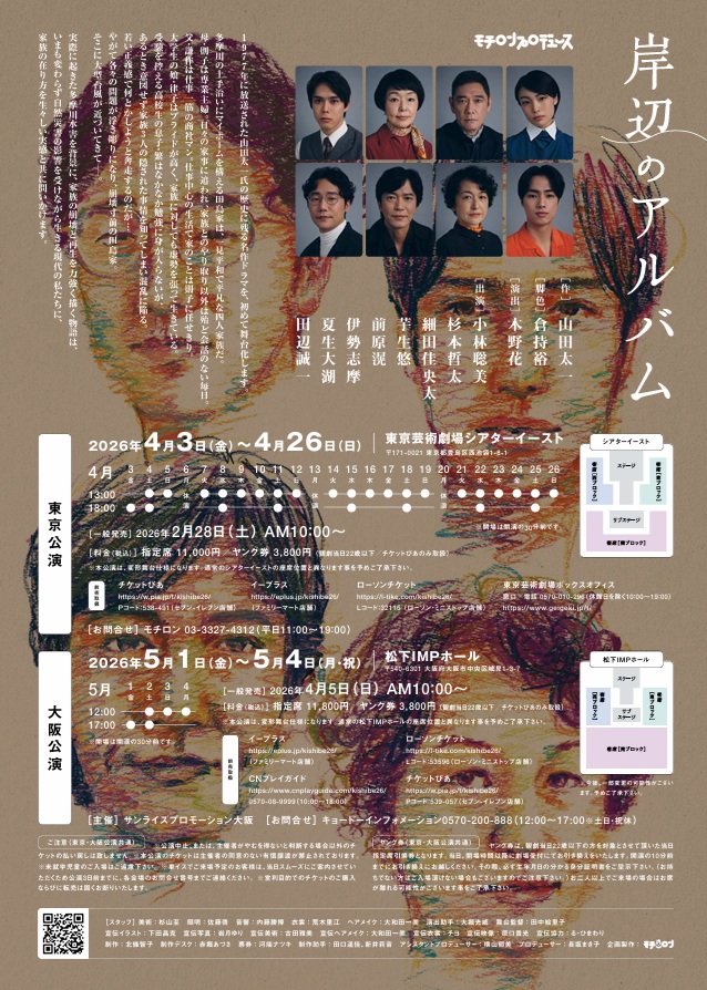 『岸辺のアルバム』、満を持しての舞台化です。素晴らしい名作に、魅力的な役者たちが花を開かせます。演出も全力で挑戦する覚悟です。どうぞ皆さまもご期待ください。